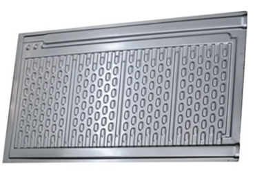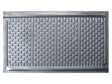 沉浸式板式換熱器的整體熱力結(jié)構(gòu),是根據(jù)矩形板殼瓦楞擴展傳熱原理,采用流體非均態(tài)紊動效應(yīng)設(shè)計。傳熱板表面幾何曲面設(shè)計,有效地提高了流體運動中的傳熱因素——流體紊動率。減少流體邊界層熱阻,促使熱流體向全面?zhèn)鬟f,從而強化傳熱效率。