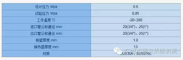 沉浸式換熱器整體熱力結(jié)構(gòu)是根據(jù)矩形板殼瓦楞擴展傳熱原理,傳熱板表面曲面系數(shù)有效地提高了流體運動中的傳熱要素—流體紊動率,減少流體邊界層熱阻和溫度梯度,促使流體向全平面?zhèn)鬟f,從而強化傳熱效率。技術(shù)參數(shù)