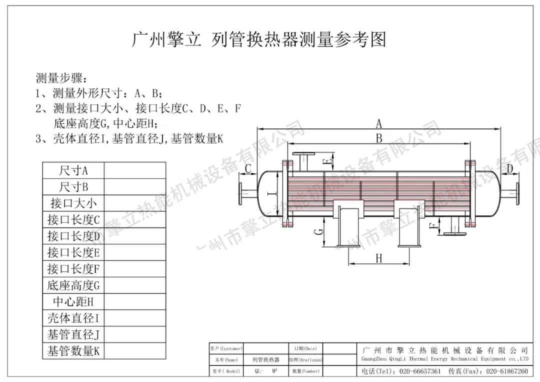 列管換熱器測量主要需要知道殼體直徑,殼體厚度,基管直徑、材質,進出接口大小和中心距