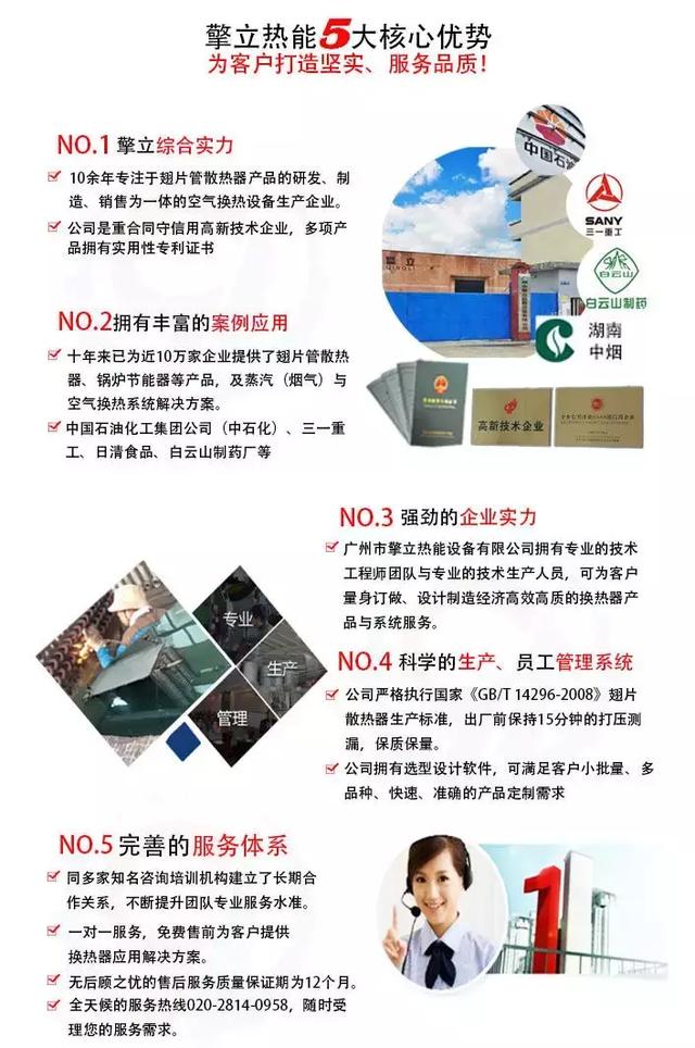 廣州市擎立熱能機(jī)械設(shè)備有限公司是一家集設(shè)計(jì)開發(fā)、生產(chǎn)、銷售為一體,專業(yè)生產(chǎn)非標(biāo)熱交換器且多項(xiàng)產(chǎn)品擁有實(shí)用型專利的高新技術(shù)型企業(yè)。公司位于廣州花都,占地面積10000+平方,擁有先進(jìn)的現(xiàn)代化設(shè)備和一流的技術(shù)力量,專業(yè)設(shè)計(jì)與生產(chǎn)翅片管散熱器,余熱回收,鍋爐節(jié)能器,表冷器,蒸發(fā)器,冷凝器,換熱器,各種規(guī)格翅片管等換熱設(shè)備。